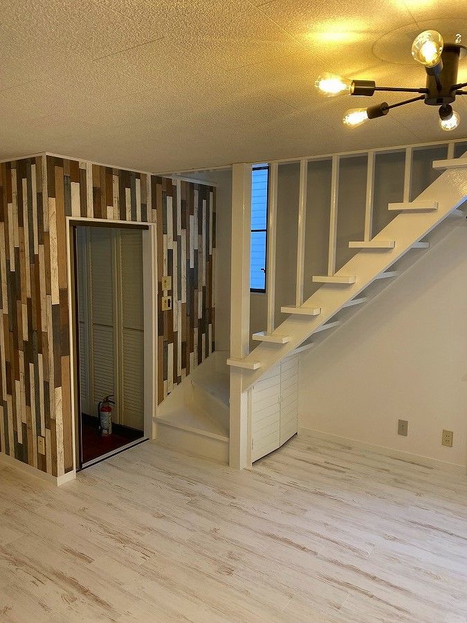 クロスの張り替え、クッションフロアの張り替え照明器具交換を行いました。クッションフロアのメ…